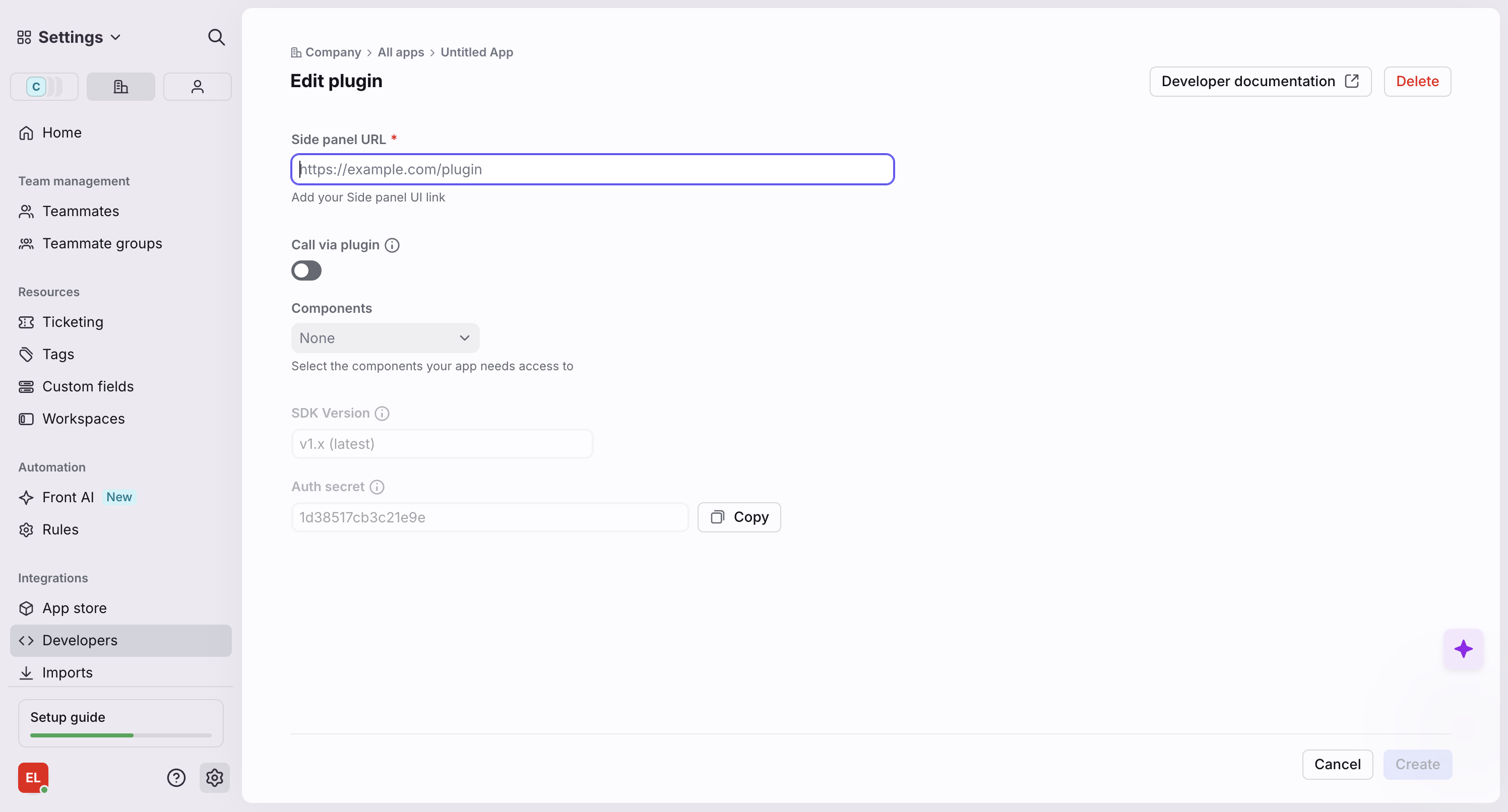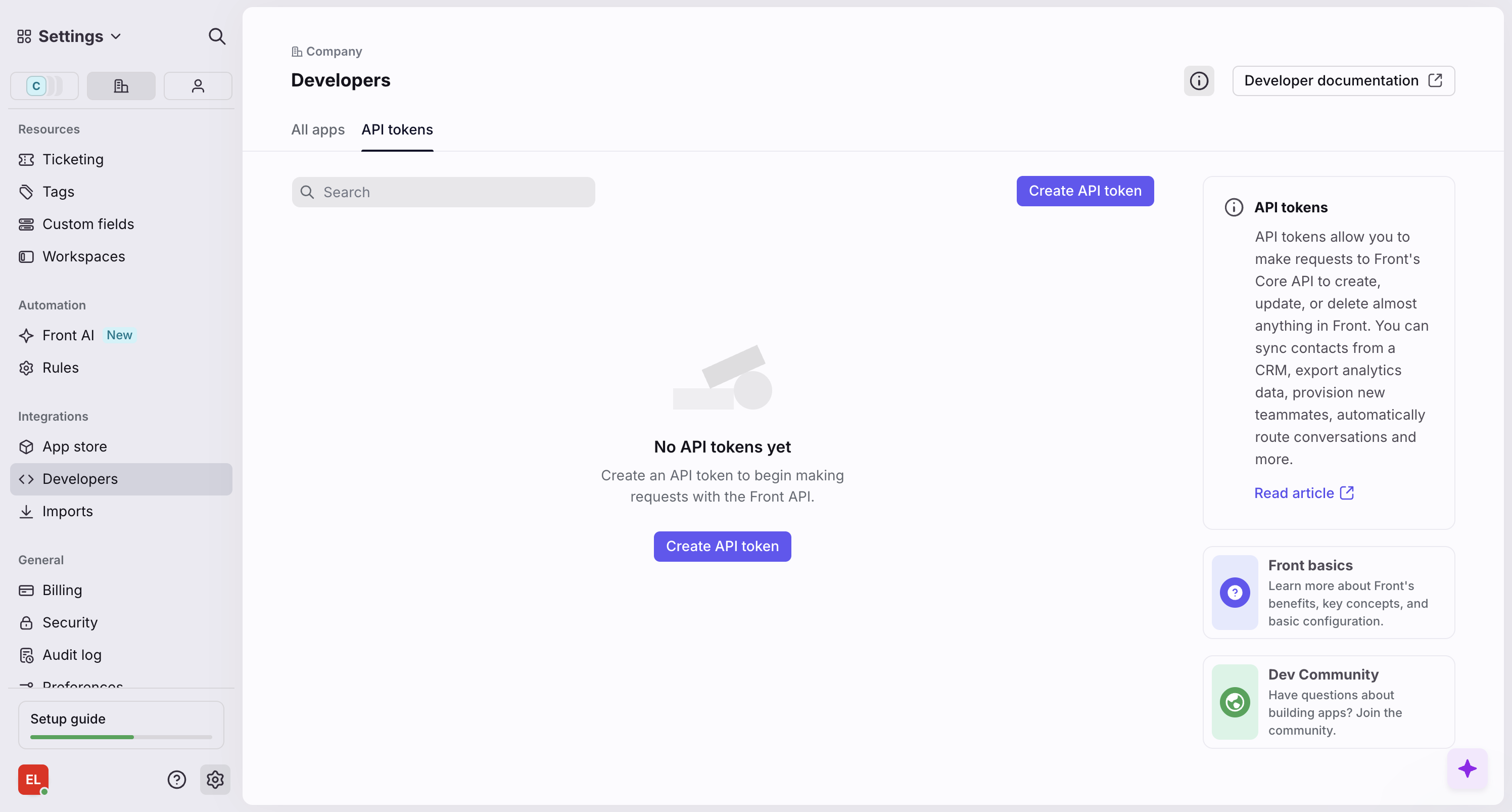 Simply paste the generated API token into the Front connection setup form on Bemi AI.