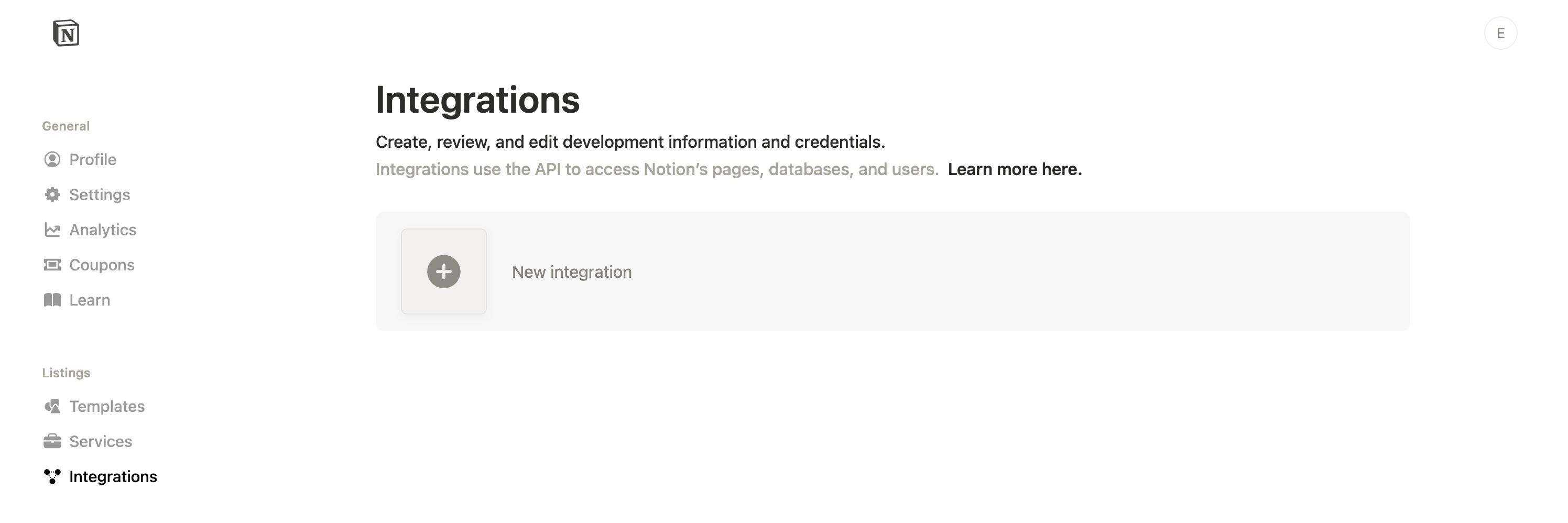 1. Navigate to Integrations and click New integration.