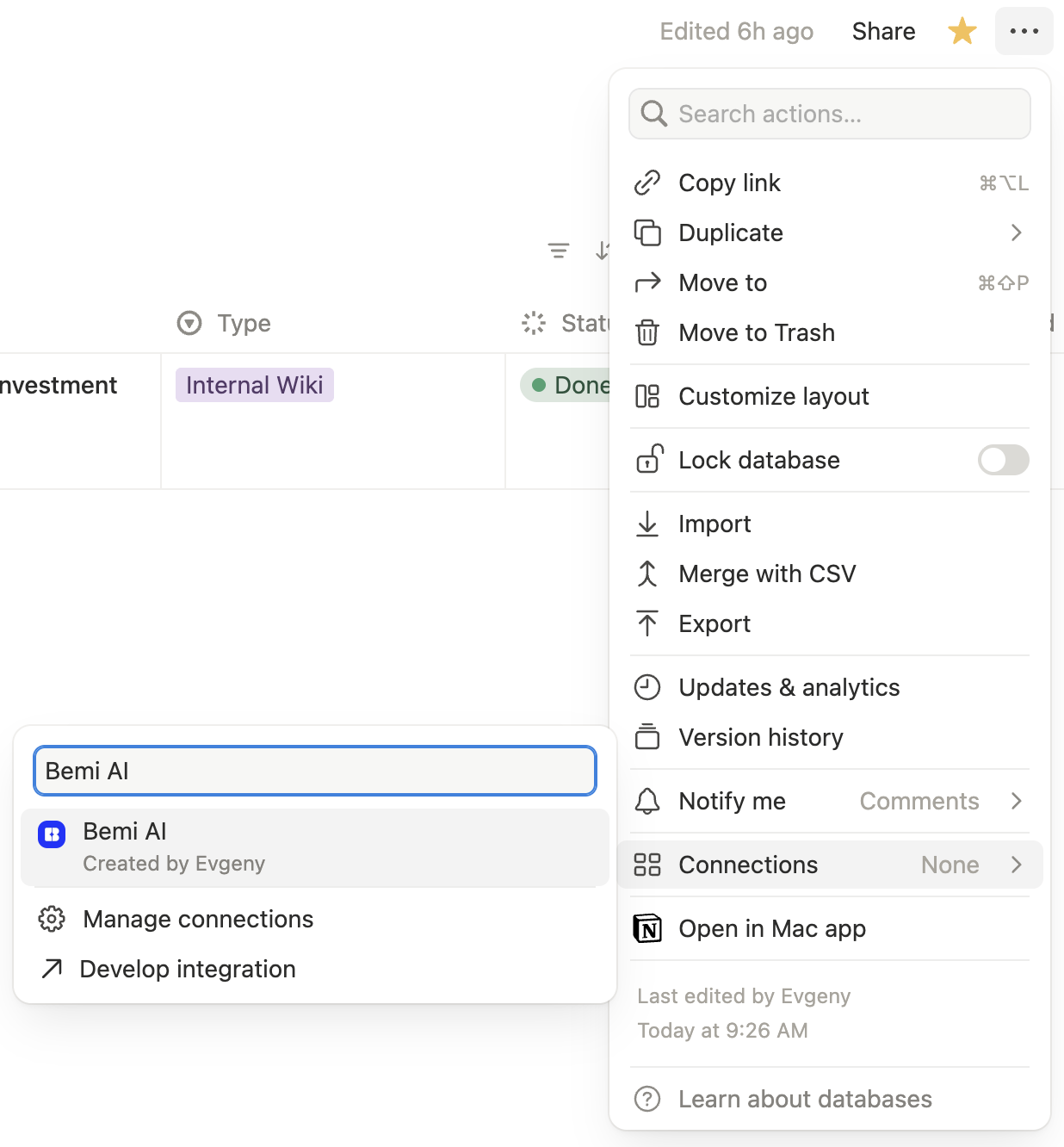 1. Open the Notion page or database you want to share with Bemi AI.